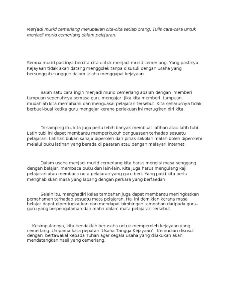 Karangan Tentang Cara Cara Menjadi Pelajar Cemerlang Pdf