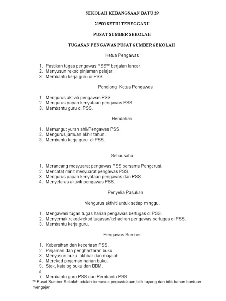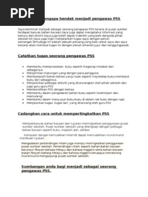 Tugasan Pengawas Pusat Sumber Sekolah Pdf