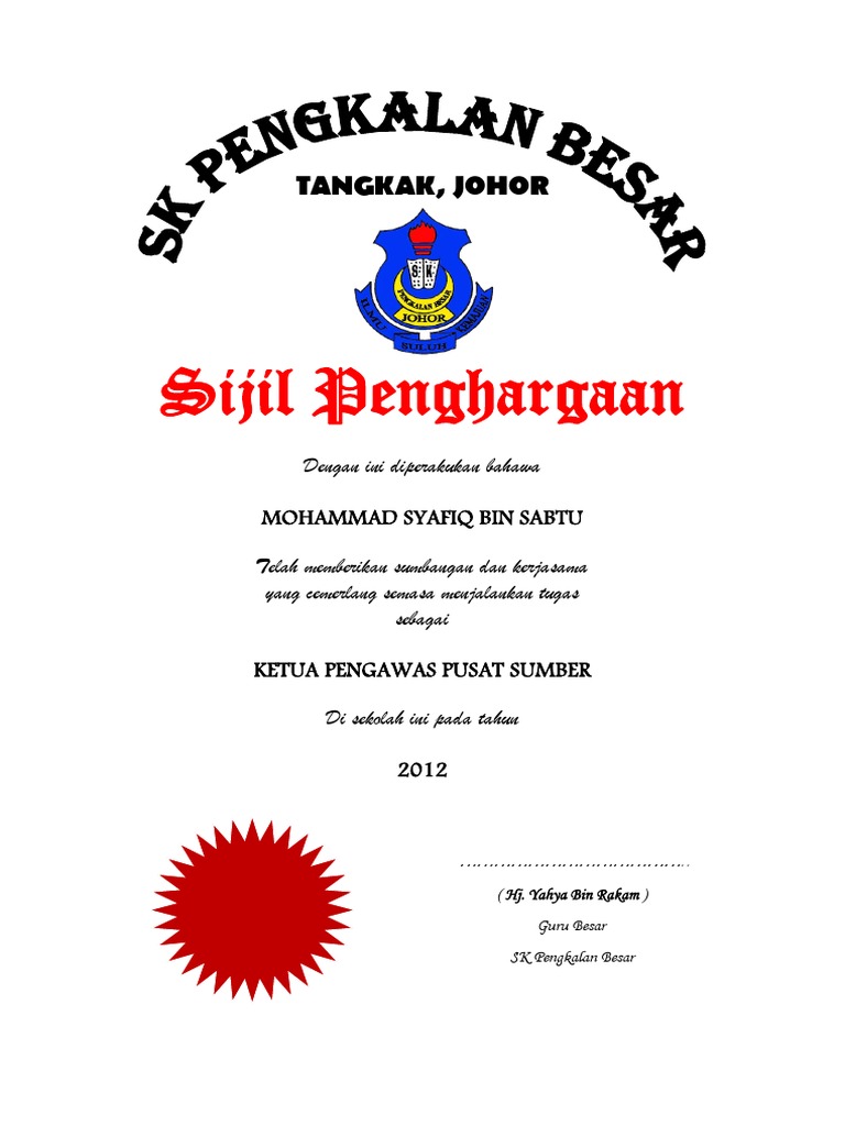 Sijil Pengawas Pusat Sumber Contoh Pdf