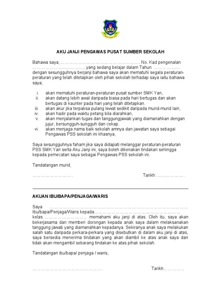 Aku Janji Pengawas Pusat Sumber Sekolah Pdf